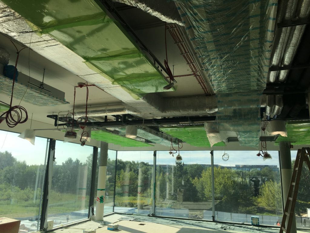 Największe zapotrzebowania na energię cieplną i chłodniczą w zakresie instalacji klimatyzacyjnej jest związane z przygotowaniem świeżego powietrza w centralach klimatyzacyjnych oraz schładzaniem pomieszczeń przez instalację klimatyzacji pomieszczeń. Duża efektywność energetyczna została osiągnięta poprzez zastosowanie rotorowych wymienników ciepła pomiędzy powietrzem wywiewanym a nawiewanym, o sprawności sięgającej 73%, oraz zastosowanie recyrkulacji powietrza w okresie zimowym, przy obliczeniowej temperaturze zewnętrznej -20°C, wskutek odzysku ciepła powietrze jest ogrzewane do temperatury około 5°C.