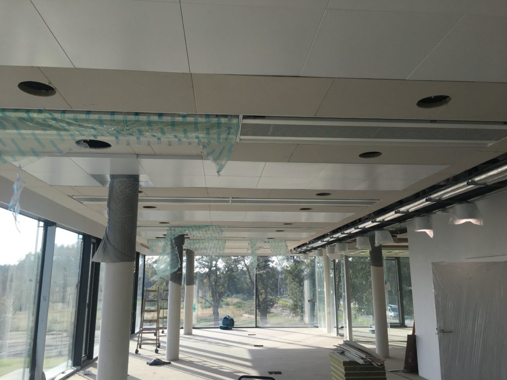 Klimatyzacja budynku zapewniana jest przez system aktywnych belek wentylacyjnych i panelowych stropów chłodzących. Do ogrzewania pomieszczeń niewymagających klimatyzacji zastosowano grzejniki radiatorowe i konwektorowe. Instalacje belek aktywnych i stropów chłodzących zasilane są w lecie wodą lodową o parametrach 16/19°C, pozwalając na wykorzystanie chłodzenia pasywnego. Chłodnica w centrali wentylacyjnej zasilana jest wodą lodową o parametrach 7/12°C umożliwiająca osuszanie powietrza. Źródłem niskotemperaturowego czynnika chłodniczego i grzewczego są dwie pompy ciepła solanka/woda współpracujące z wymiennikiem gruntowym i zasobnikami wody grzewczej oraz wody lodowej, a także suchą chłodnicą, panelami solarnymi zainstalowanymi na dachu budynku. Wysokotemperaturowym źródłem ciepła jest kocioł elektryczny włączany w okresie, kiedy podstawowe źródła nie są w stanie zapewnić wymaganych parametrów ciepłej wody użytkowej.