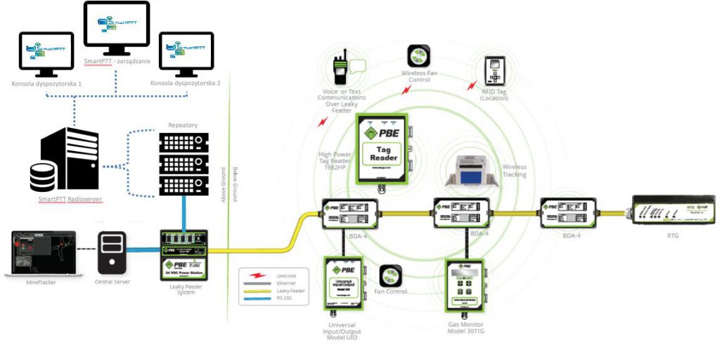 • System można podłączyć do kopalnianej sieci telekomunikacyjnej.